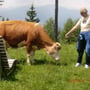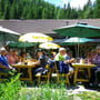 Ein Teil unserer Gruppe fuhr mit der Tschu-Tschu-Bahngemütlich bis zur Kochlöffelhütte und genoß sitzend das schöne Bergpanorama. Diejenigen, die gut zu Fuß waren, nutzten die Möglichkeit der traumhaften Wanderung entlang des Baches. Um halb 12 waren alle vor Ort in der Kochlöffelhütte, wo plaudern, rasten und ein gemeinsames Essen am Programm standen.