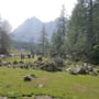 Die sportlichen wählten die Wanderung zum Wolayersee mit ca. 6 Stunden Gesamtgehzeit und fuhren mit dem Auto bis zur Hubertuskapelle wo es dann nach einem Gruppenfoto los ging. Auf einer Forststraße wanderten wir stetig aufwärts über die Untere Wolayeralm und der Oberen Wolayeralm zum Wolayersee. Es waren gut 800 Höhenmeter zu bewältigen. Zwischendurch legen wir Pausen ein und Adi hatte für alle zur Stärkung eine Jause mitgenommen, worüber wir uns sehr freuten. Am Ziel angekommen kehrten wir bei der Wolayerseehütte ein und hielten Mittagspause bei einer warmen Suppe oder anderen Leckerbissen. Bevor wir den Rückweg ins Tal antraten umrundeten wir den Wolayersee und 2 mutige GruppenteilnehmerInnen sind sogar in den Wolayersee bei ca. 14 Grad Wassertemperatur gegangen.