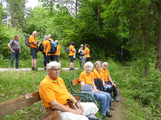 Nach Eintreffen der Teilnehmer*innen von der Aktivgruppe mit Fahrtengemeinschaften am Parkplatz Forstsee um 10 Uhr, gab es endlich ein herzliches Wiedertreffen nach einer langen Corona – Zwangspause mit 17 Personen.