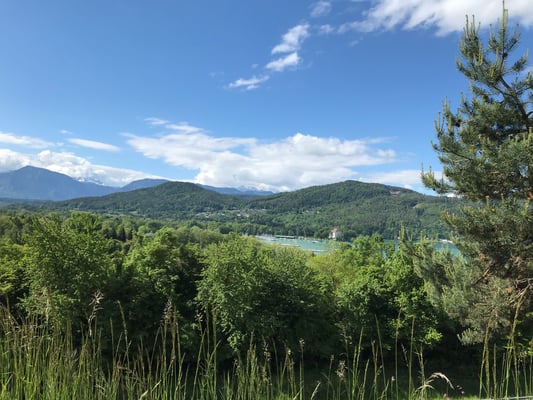 Von der Ostbucht aus ging es am Schloss Freyenthurn und an einem Weinberg vorbei auf die Zillhöhe. Vom Aussichtspunkt auf der Zillhöhe überblickten wir den östlichen Teil des Wörthersees. Auch die Aussicht auf den Pyramidenkogel und die Karawanken konnten wir geniesen.