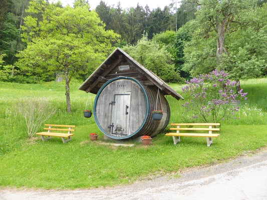 Das Wetter war anfangs bewölkt und ideal für den Start der Wanderung. Bei einem Bauernhof sahen wir ein großes hölzernes Fass mit einem Fassungsvermögen von ca. 17.600 Litern. Der letzte Teil der Rundwanderung war etwas beschwerlich für einige von uns, die Sonne trat aus den Wolken heraus und es wurde zu Mittag schon sehr heiß.