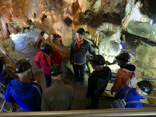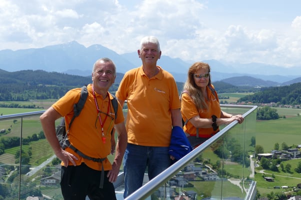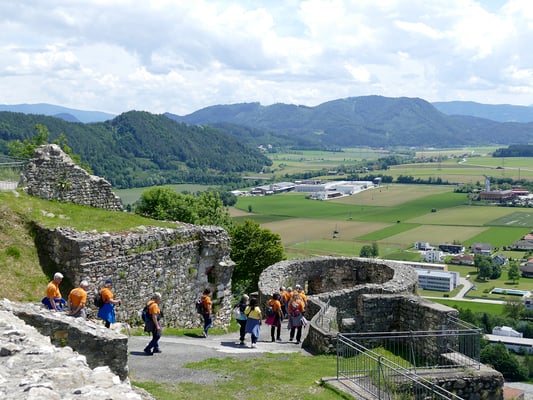 Die Aktivgruppe mit 18 Wanderbegeisterten traf sich am Samstag, 25.Mai am Hauptplatz in Griffen. Der Schlossberg wurde um die Mitte des 12.Jahrhunderts als Wehrburg von den Bamberger Fürstenbischöfen errichtet und ist seit dem Jahre 1999 im Besitz der Marktgemeinde. Der Berg ragt, unübersehbar über das Kärntner Unterland bis hin zu den Karawanken. Der Wanderweg (2,3 km lang und 120 Höhenmeter) führte uns, vom Hauptplatz hinauf zum Schlossberg. Oben angelangt, wurden wir mit einem herrlichen Rundumblick belohnt. Eine Attraktion ist die gläserne Aussichtplattform "Jauntalblick". In einer urigen, mittelalterlichen Schlossbergschenke, genossen wir ein gemeinsames Mittagessen. Anschließend gab es eine interessante Führung in der Tropfsteinhöhle, welche durch ihre spezielle Beleuchtung, herrlich zu Geltung kam. Den schönen Tag ließen wir in einem Gastgarten bei Kaffee und Eis ausklingen.