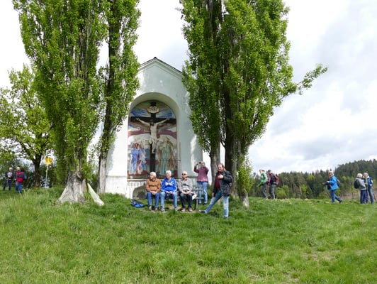 Der erste Ausflug unserer Aktivgruppe im heurigen Jahr führte unsere Teilnehmer in die schöne Gegend des Maria Saaler Berges. Die Wanderbegeisterten trafen sich am Samstag, 20.April 2024 in St. Georgen am Sandhof, nördlich vom Klagenfurter Flughafen. 14 Personen starteten im Zentrum der Ortschaft und gingen an der Kirche vorbei leicht bergauf. Weiter ging es dann nordwärts durch den schönen Wald in Richtung Maria Saal. Nach einiger Zeit kamen wir bei einem interessanten Bildstock, das „weiße Kreuz“ vorbei, wo wir mit einer prachtvollen Aussicht auf die Landeshauptstadt Klagenfurt belohnt wurden. Wieder in St. Georgen am Sandhof zurückgekehrt, konnten wir uns beim Gasthaus Lutschounigg auf ein gutes Mittagessen freuen. Mit schönen Eindrücken traten wir wieder die Heimreise an.